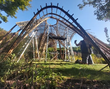 At one nest, we rethink architecture by weaving local bamboo and cane into structures that breathe with organic curves and community spirit.